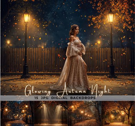 Autumn Digital Backdrop Glowing Autumn Night, Fall Portrait Photography Background, Night Photoshop Overlay, Fine Art Composite Scenery