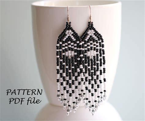 Beaded Fringe Earrings Pattern, Ethnic Beaded Earrings Pattern, Beading Pattern, Seed Bead Pattern Brick Stitch Beadwork Jewelry Pattern