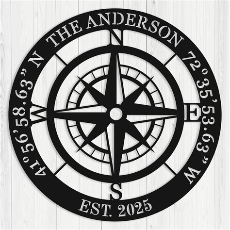 Custom Metal Compass Sign: GPS Coordinates, Family Name, Outdoor Wall Art