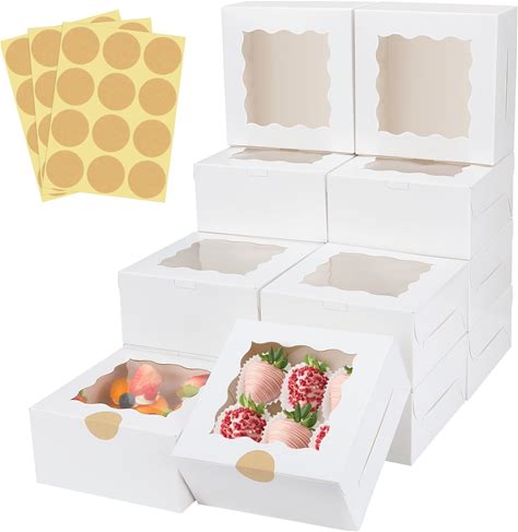 Moretoes 80Pcs 6X6x3 Inches Bakery Boxes, Cookie Boxes With Window, Small Treat Containers For Pastries, Chocolate Covered Strawberries, Macarons,
