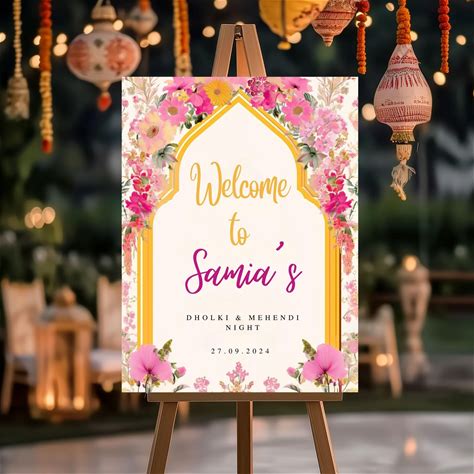 Welcome Mehendi Signboard Floral Mehndi Welcome Sign Custom Mehndi Sign Dholki Sign Floral Sign Indian Wedding Sangeet Sign