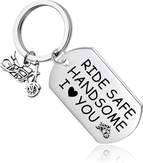 Amlivo Motorcycle Keychain Gifts For Biker Riders Motorcycle Accessories For Men Ride Safe Handsome I Love You Key Chain Drive Safe Keychains For Him