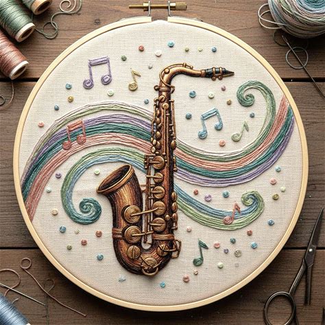 Vintage Saxophone Hand Embroidery Pattern - Musical Art PDF Design, Beginner Friendly Hoop Art