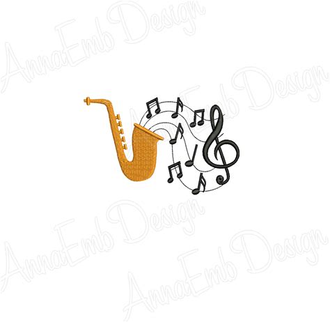 Saxophone Embroidery Design. Saxophone And Musical Notes Machine Embroidery Design. Saxophone Design. Mini Saxophone Design.