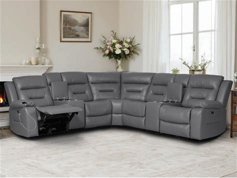 Power Recliner Sectional, Faux Leather Power Reclining Sectional Couch, Modular Livingroom Furniture Sets With 2 Storage Console & 4 Cup Holders (Gray