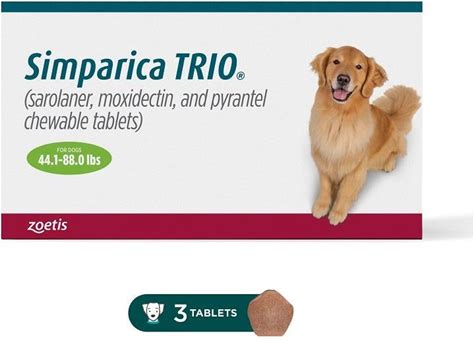 Simparica Trio Chewable Tablets For Dogs 44.1-88 Lbs Green, 3 Month Supply | Allivet