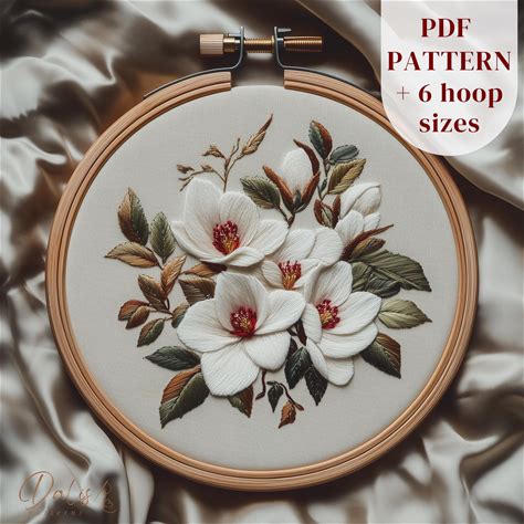 Magnolia Flowers Hand Embroidery Design, Magnolia Bouquet Embroidery Pattern, Spring Flowers Embroidery PDF Template, DIY Embroidery Craft