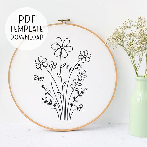 PDF Embroidery Wild Flowers Patterns Dissolve Hand Embroidery Printable Stick And Stitch Beginner Pattern Digital Download Stencil