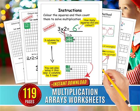 Multiplication Arrays Worksheets: Coloring Math Practice (Printable Pdf Digital Download)