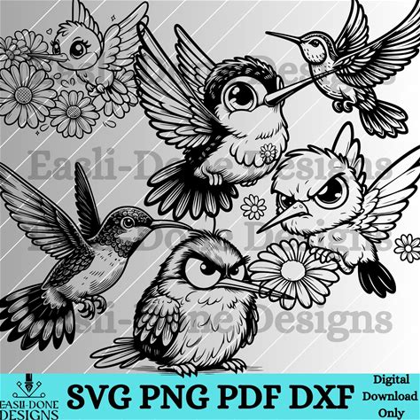 Hummingbird Outline Bundle SVG PNG Pdf And Dxf Files Instant Download Hummingbird Svg Clipart Cutter And Laser Cut Files Embroidery Coloring