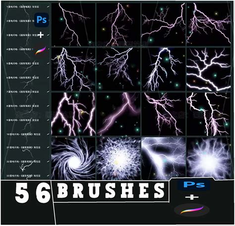 56 Lightning Effect Brushes: Procreate & Photoshop