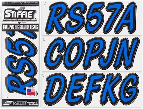 STIFFIE Uniline Blue 3" Boat & PWC Registration Decals Numbers Letters Stickers