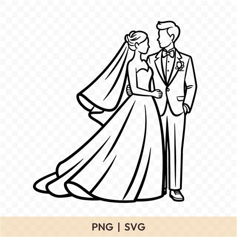 Hand Drawn Bride And Groom Clip Art - Wedding Couple SVG PNG (Digital Download)