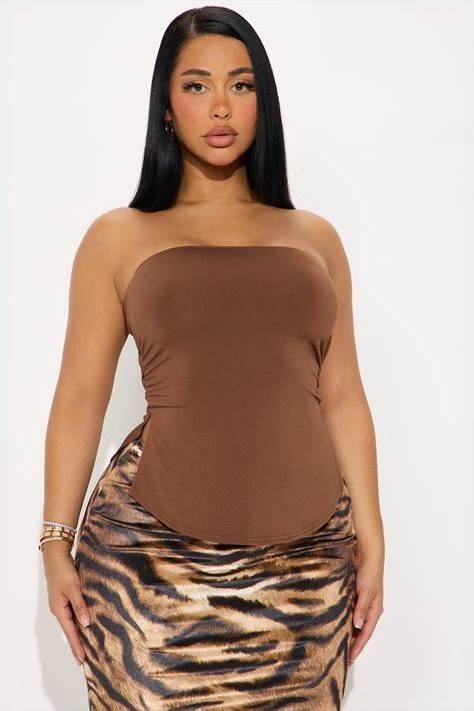 Embellished Animal Strapless Sequin High Neck, Tube Top In Brown Size XL For Festival | Fashion Nova