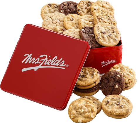 Mrs. Fields 2 Dozen Signature Tin - Assorted With 24 Original Cookies In 5 Classic Cookie Flavors - Semi-Sweet Chocolate Chip, Oatmeal Raisin,