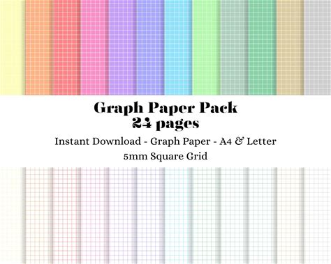 6 Digital Graph Paper Bundle, Digital Notebook Paper Templates | Printable Colored Graph Paper For Note-Taking | 5 mm Grid | A3/A4/A5/Letter