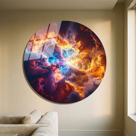 Round Cosmic Explosion Tempered Glass Wall Art, Galaxy Circular Decor