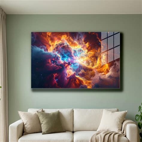 Cosmic Explosion Tempered Glass Wall Art, Galaxy Nebula Abstract Decor