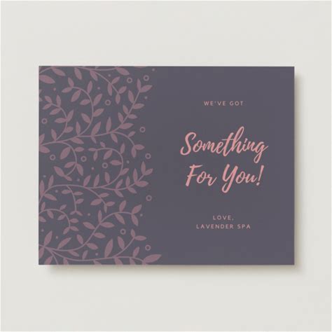 Canva Dark Vines Massage Voucher Gift Certificate, Pink/Purple, Matte Finish, Pack Of 50, Small/Large, Premium Paper, Deluxe Paper, Hemp Paper