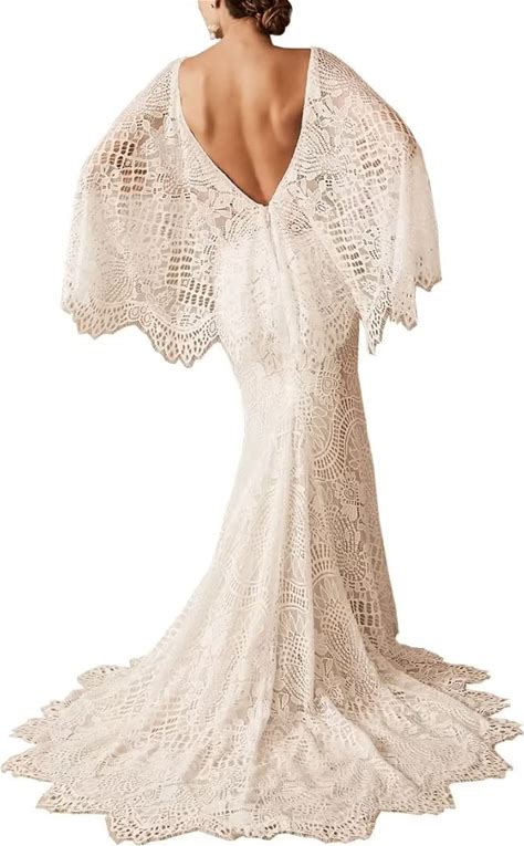 Ksyfinmag Boho Wedding Dresses For Bride Lace Mermaid Bridal Dress V Neck Cape Sleeve Beach Bohemian Vintage Wedding Gown
