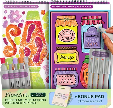 Lifelines Flowart Activity Pads, 2-Pack & Bonus Pad - Guided Art Meditations - 2 Sets Of Markers & 48 Scenes - Hidden Patterns & Pogo-Dot Coloring