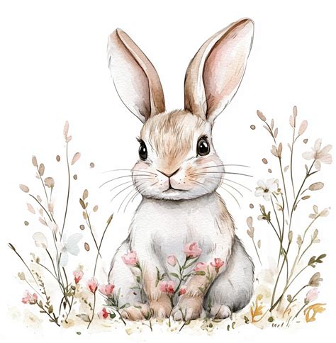 Printable Cute Lovely Rabbit Clipart, Watercolor Art, Printable JPG, Pet Animal, Commercial Use, Paper Design, Lovely Bunny Art