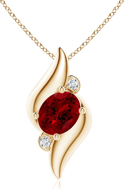 Angara 2.09 CTW Lab-Grown Shell Style Oval Ruby And Lab Diamond Pendant In 14K Yellow Gold