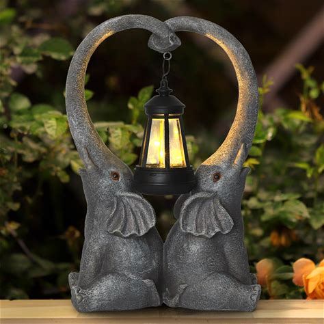 VV-Ladybug Elephant Statue Garden Decor With LED Solar Lights-Set Of 2 Good Luck Elephant Outdoor Statue Christmas Decorations For Yard Patio Porch