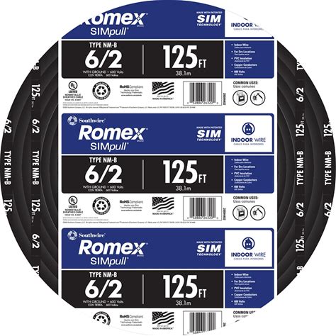 Southwire 125-Ft 6 / 2 / Romex Simpull Stranded Indoor CU NM-B W/G Individual Pack ( By-The-Roll ) | 28894402