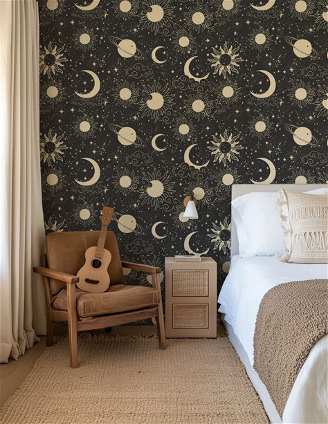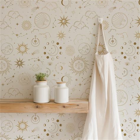 Celestial Sun and Moon Wallpaper: Boho Chic Peel & Stick or Texture