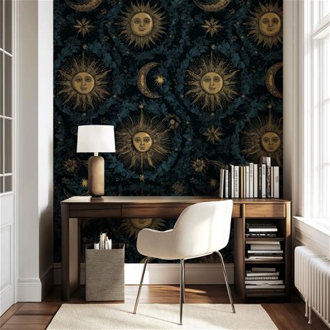 Celestial Sun And Moon Wallpaper: Vintage Mystical Sky, Peel And Stick