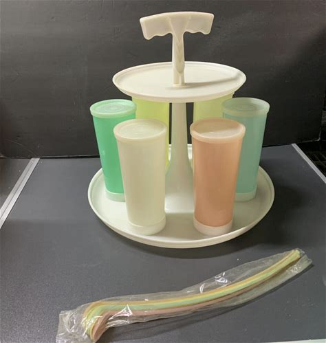 Vintage Tupperware 2-Tier Carousel Caddy With 6 Tumbler Cups 1960'S. Tupperware. Multicolor. Other Kitchen Storage.
