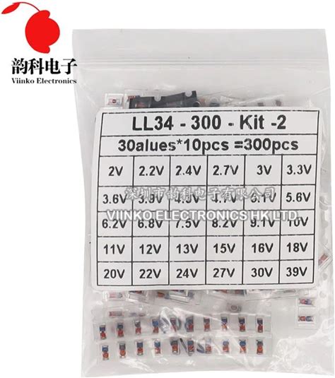 300Pcs LL34 SMD Zener Diode Assorted Kit 1/2W 2V-39V 30Values10pcs=300Pcs Sample Set