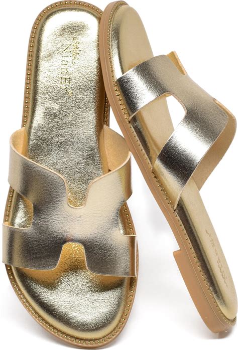 Nianer Womens Microfiber Leather Memory Foam Support H Sandals Dress Dressy Slip On Casual Cute Comfort Bride Bridal Wedding Designer Date Flat