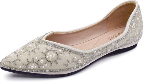 ZQKSEOHS Flats Shoes Women Rhinestone Sequin Wedding Pointed Toe Dress Flat Shoes Comfortable Flats For Women Dressy