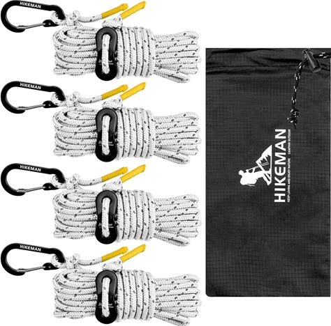 HIKEMAN Reflective Tent Rope Guyline - 4m Camping Guide ropes,4mm Tent Guy Ropes Cord With Aluminum Tensioners Adjuster For Outdoor Camping Hiking