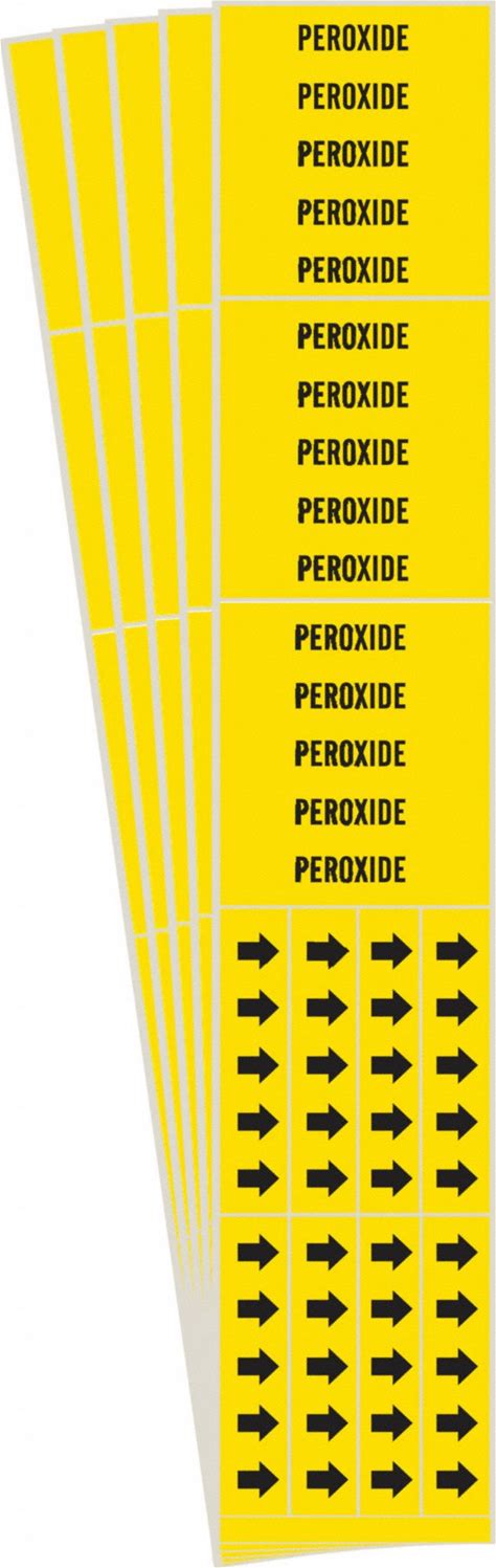 Brady Pipe Marker: Peroxide, Yellow, Black, Fits 3/4 To 2 3/8 in Pipe O.D., 4 Pipe Markers, 5 PK [PK/5] Model: 8796-4-PK