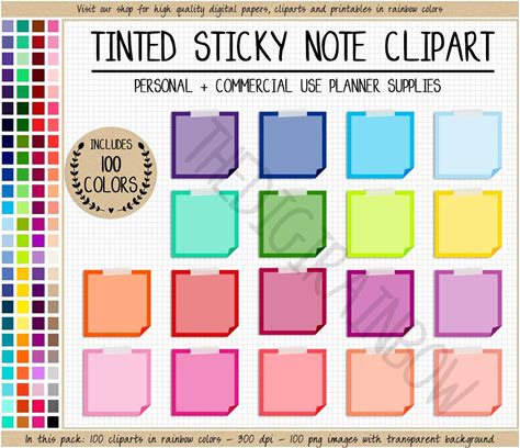 SALE 100 Sticky Note Digital Sticker Mini Sticky Tab Note Clipart Rainbow Pinned Sticker Printable Erin Condren Goodnotes Bullet Journal Box