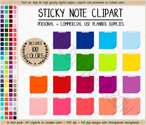 SALE 100 Sticky Note Digital Sticker Square Tapped Note Clipart Rainbow Pinned Box Sticker Printable Erin Condren Goodnotes Bullet Journal