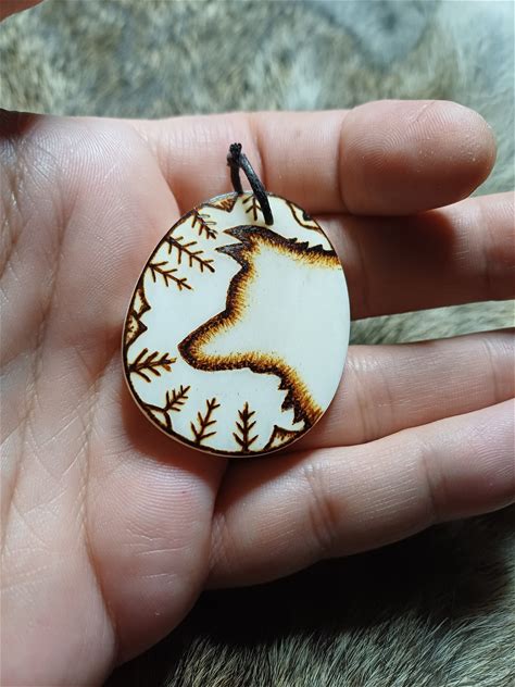 Woodburned Wolf Totem Pendant Necklace: Pyrography Animal Jewelry
