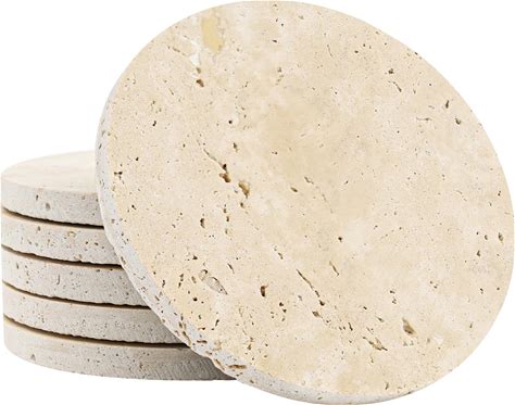 YONGHEE Italian Travertine Coasters Set Of 6, Farmhouse Rustic Neutral Style Marble Drink Coasters For Coffee Table Decor, 4 Inch Round Porous Natural