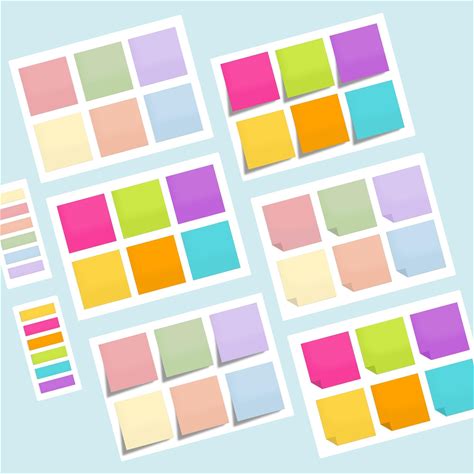 Multicolor gradient sticky notes and post note stickers isolated on transparent background.