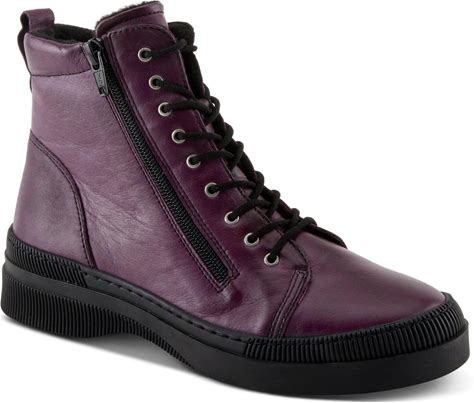 Spring Step Hoylein Leather Combat-Style Boot With Double Zippers And Removable Insole - Purple - Size EU 37 (US 7)