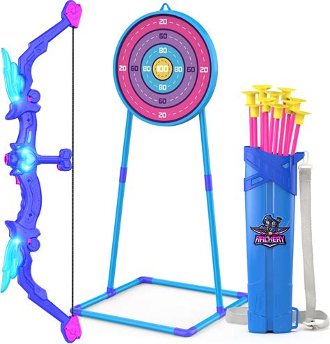 Bow And Arrow Set Light Up Archery Toy Kids Outdoor With Standing Target Birthday Gifts Indoor Games