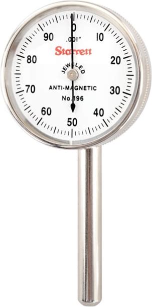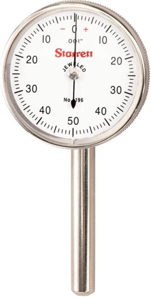 Starrett 196B5 - Back Plunger Dial Indicator, .200' Range, 0-50-0 Dial Face, .001' Graduations, 3 Contact Points & Adaptor | Tequipment