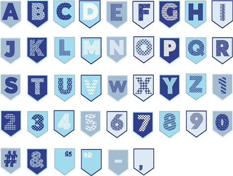 Printable Banner Digital Filer, Printable Alphabet Letter Banner, Banner, Bunting, Blue White Banner, A-Z Banner Template Pdf