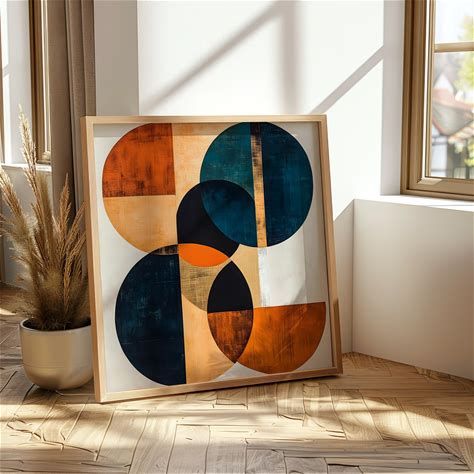 Geometric Shapes Art Print Mediterranean Style Artwork Blue And Orange Abstract Painting Bold Colour Wall Decor Modern Minimalist Home