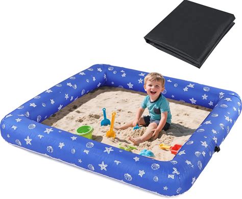 59" X 59" Inflatable Kids Sandbox With Cover - Easy Assembly Outdoor Sandbox, Large Capacity Kids Sand Box Pit For Backyard Garden, Summer Toys Gift