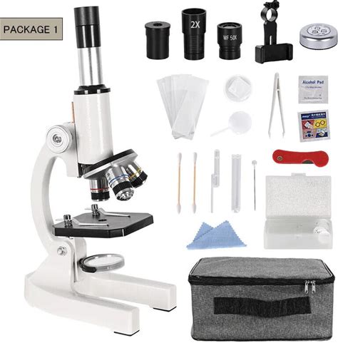 Amscope 120X-1200X 52-Pcs Beginner Microscope STEM Kit With Metal Body Microscope, Plastic Slides, LED Light And Carrying Box (M30-ABS-KT2-W),White