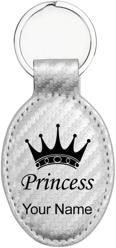 Lasergram Oval Keychain, Princess Crown, Personalized Engraving Included (Carbon Fiber Silver)